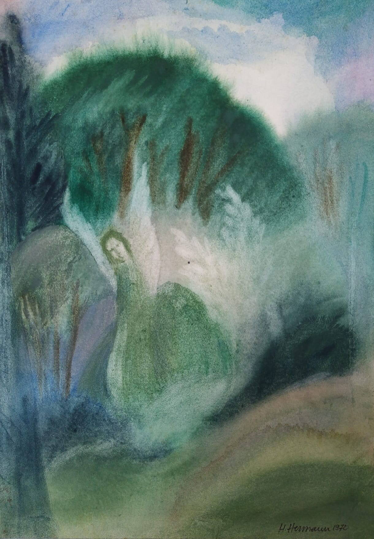 Ein Ort wo Elfen wohnen. 1979, 80 X 100 cm, Acryl
